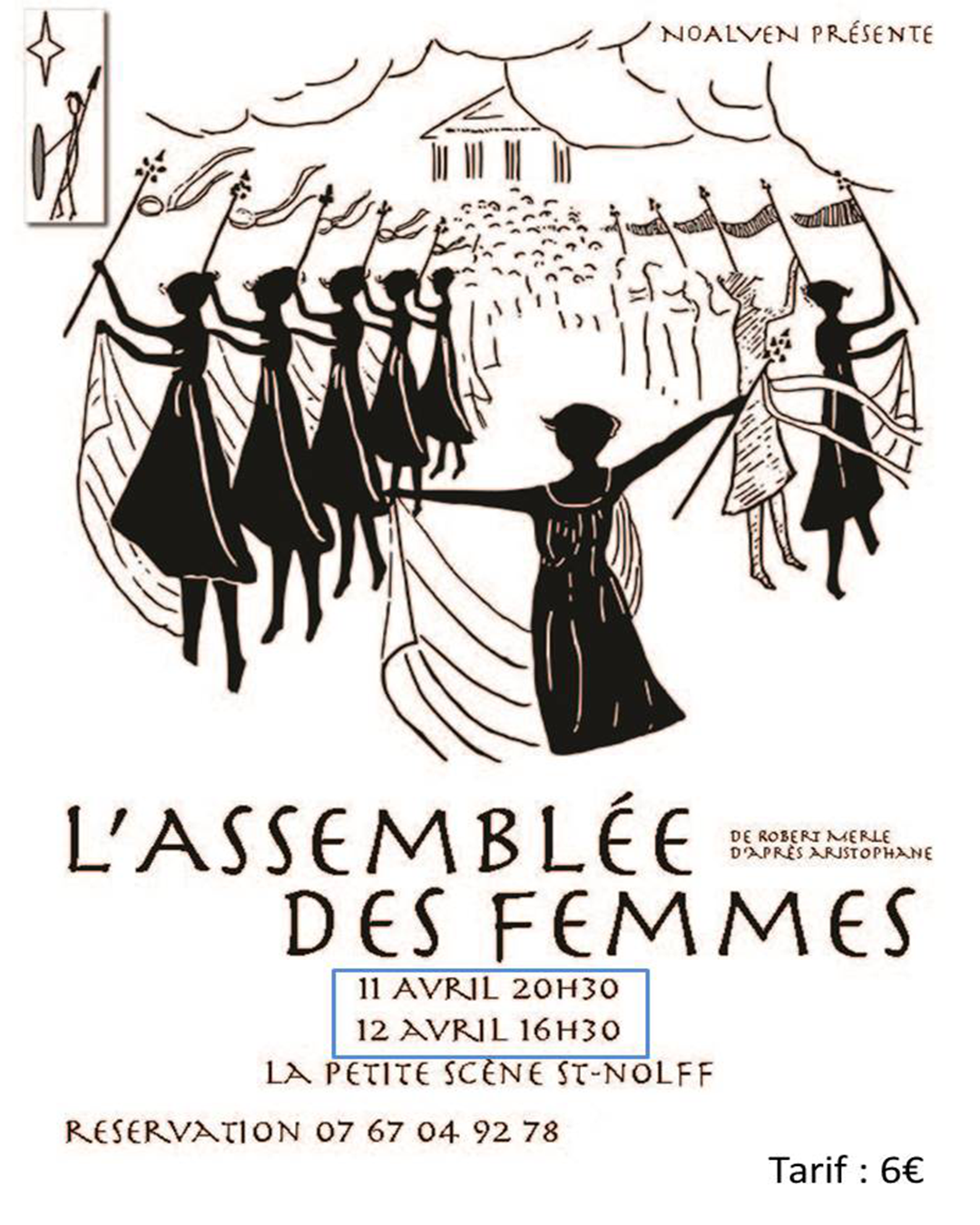 Le samedi 11 et le dimanche 12 avril, la troupe Jan Verkade reçoit la troupe Noalven d’Elven pour sa nouvelle pièce « L’assemblée des femmes » de Robert Merle d’après Aristophane.